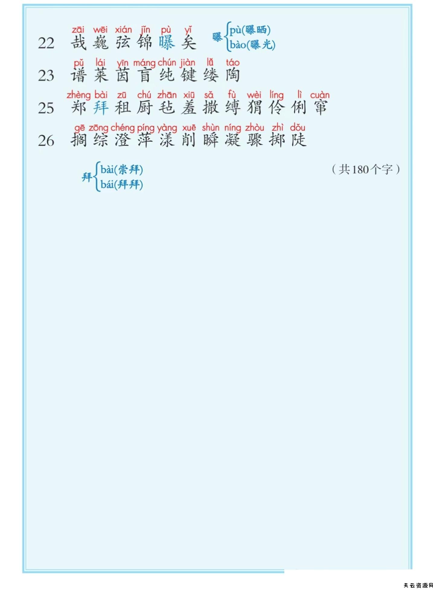 六上语文课后写字表+词语表注音(5页)-天云资源网